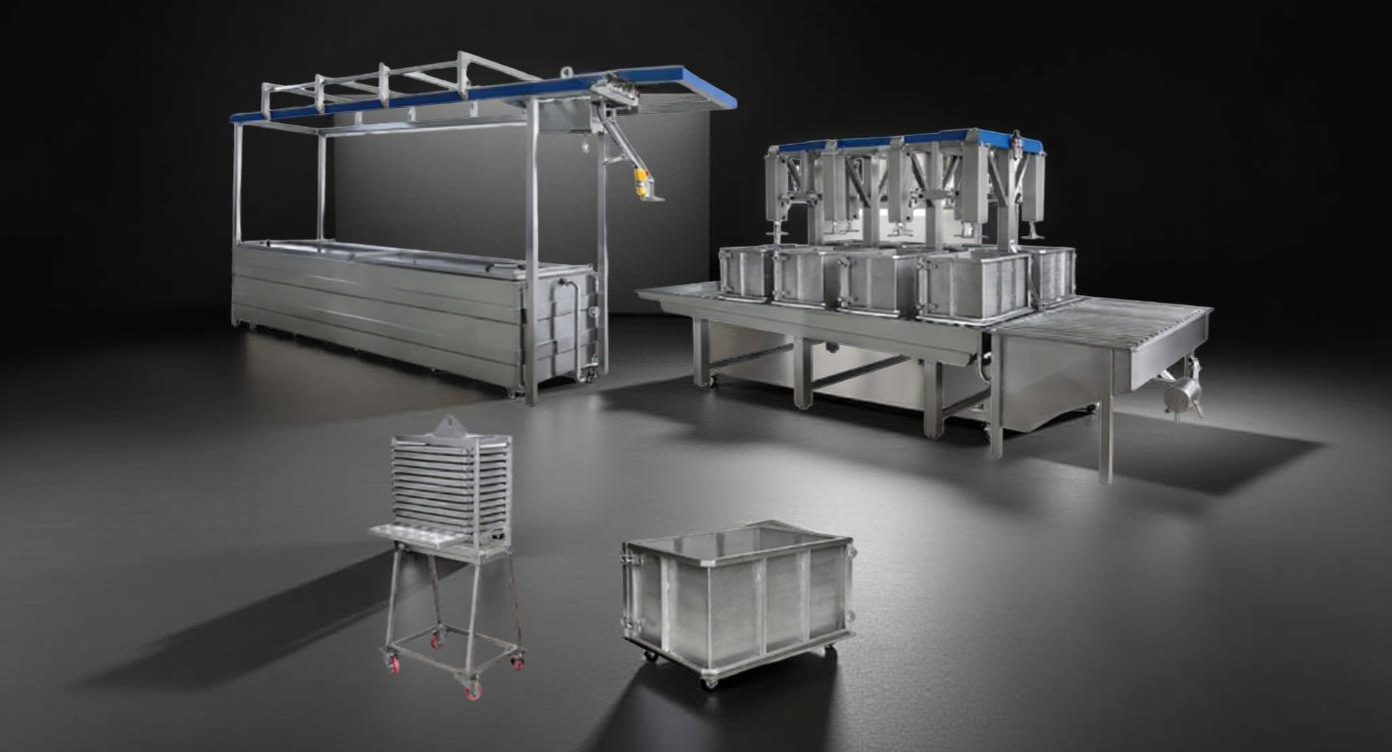 Процесс включает в себя технологическую емкость, прессовальный агрегат, варочный котёл, формы для халуми и тележку для их транспортировки.